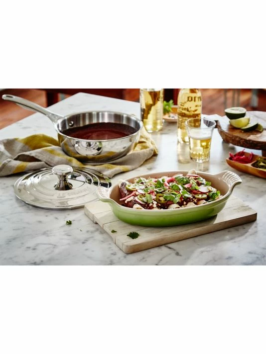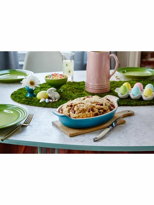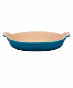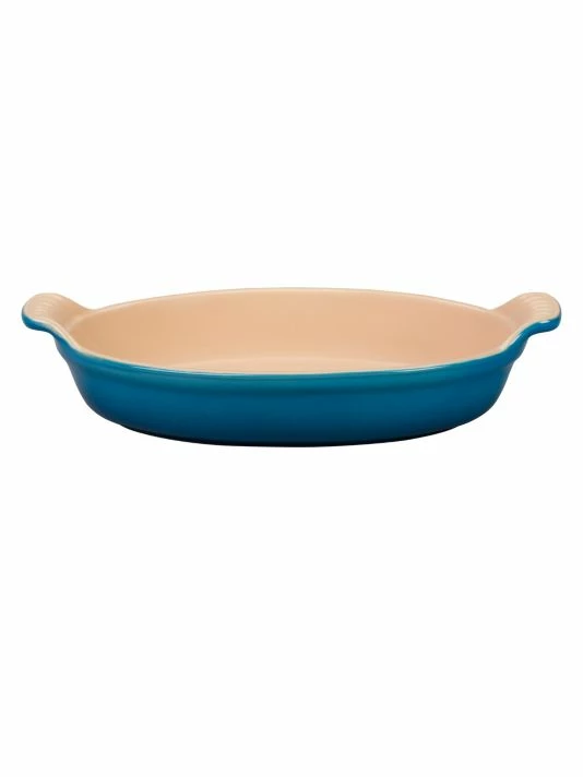 - For recipes that call for a crisp topping, the Heritage stoneware oval au gratin dish provides a wide, shallow cooking area in a variety of sizes, exposing ingredients more directly to heat. Its functional stoneware construction and variety of sizes also make the oval au gratin dish useful for everything from preparing individual sides that are small enough to fit on a dinner plate beside an entree to serving multiple portions at the table.