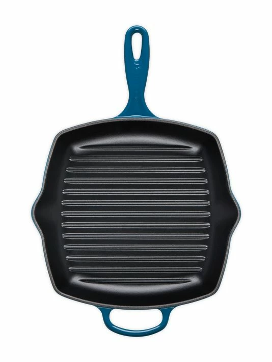 From savory vegetables to mouthwatering steak, chicken, and shrimp, the square grill gives all the delicious flavor of an outdoor grill, then presents foods beautifully at the table. The square grill is available in a wide range of exterior colors, and its interior is coated with Le Creuset’s protective satin black finish to prevent damage and wear. Over time, this slightly abrasive interior develops a natural patina that is ideal for searing and frying.