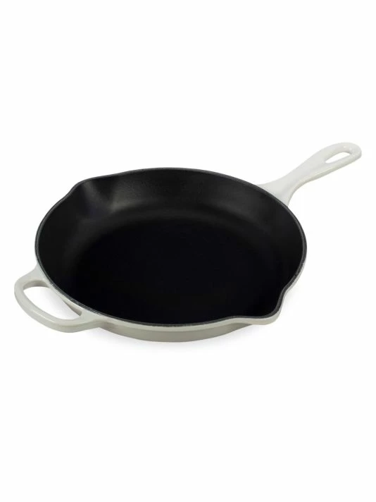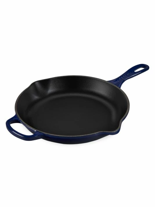A versatile cooking staple with a dash of color, this stylish skillet has vitreous porcelain finish and sloped sides that prevents drips.