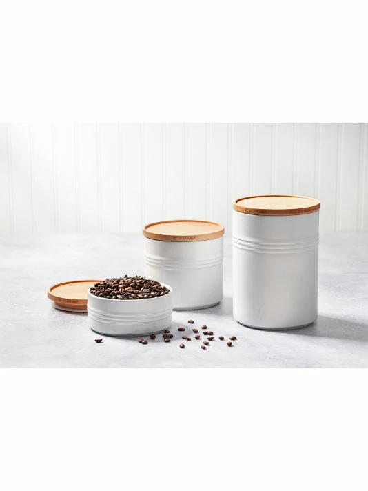 Featuring an air-tight silicone gasket seal, impermeable enamel exterior, and dense stoneware ideal for temperature regulation this canister is accented with a triple-ring design for a contemporary finish.