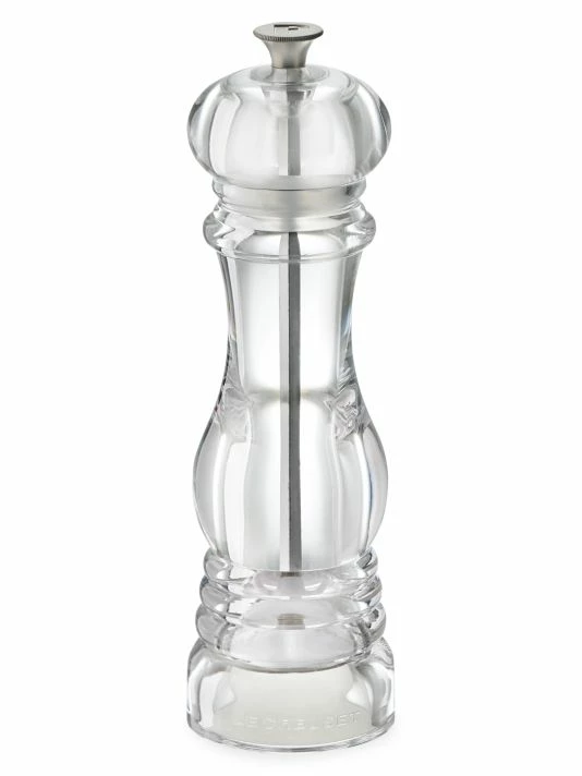 The Le Creuset acrylic salt and pepper mills combine classic form and modern technology with a twist on the iconic colors. The acrylic grinder is strong enough to crack peppercorns and corrosion-resistant for grinding salt. Adjust the grind setting with a turn of the knob โ clockwise for a finer ground and counterclockwise for a coarser grind.
