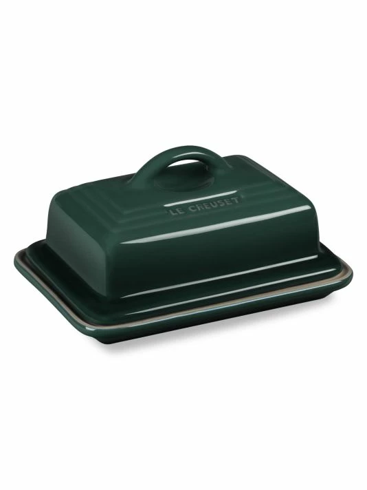 Classic covered butter serving dish made of premium stoneware ensuring superior heat retention. Safe for freezer, oven, microwave, broiler, dishwasher and metal utensils.