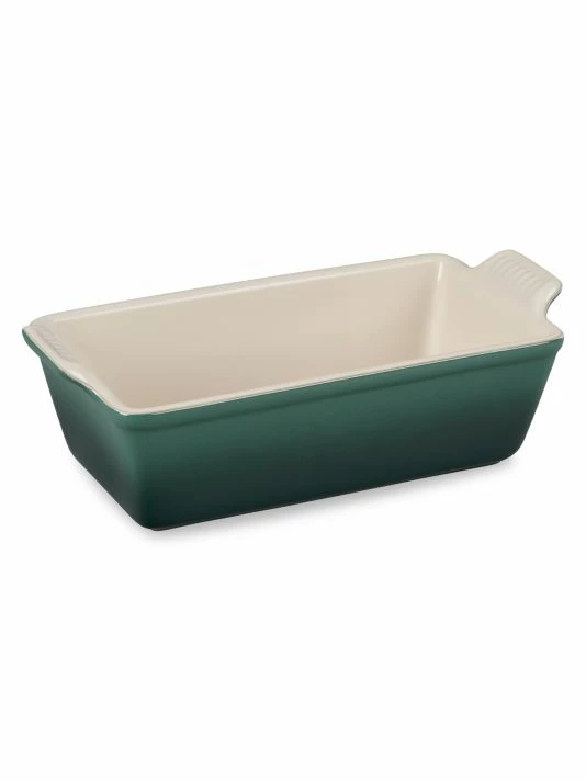 Premium stoneware loaf pan. Excellent heat distribution for uniform browning and even cooking with no hot spots. Superior heat retention keeps food warm or cold for serving. Colorful glaze is non-porous, non-reactive, scratch-resistant, and resists stains and flavor absorption. Virtually nonstick interiors easily release food for quick clean-up, and resist cracking and crazing. Unmatched thermal resistance for temperatures ranging from-nineΒ°f to 500Β°f. Safe for freezer, oven, microwave, broiler, dishwasher and metal utensils.