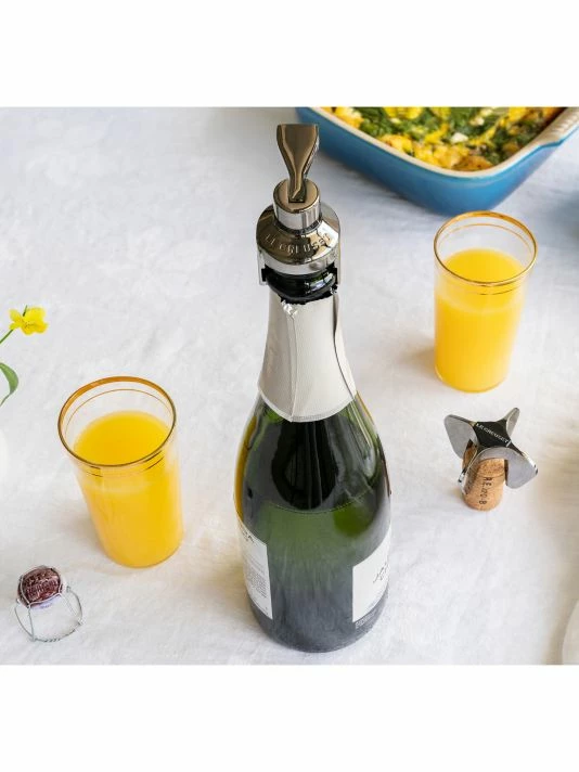 With a single motion, the Champagne Crown Sealer locks carbonation inside champagne and sparkling wine bottles, preserving contents for days with its airtight rubber seal.