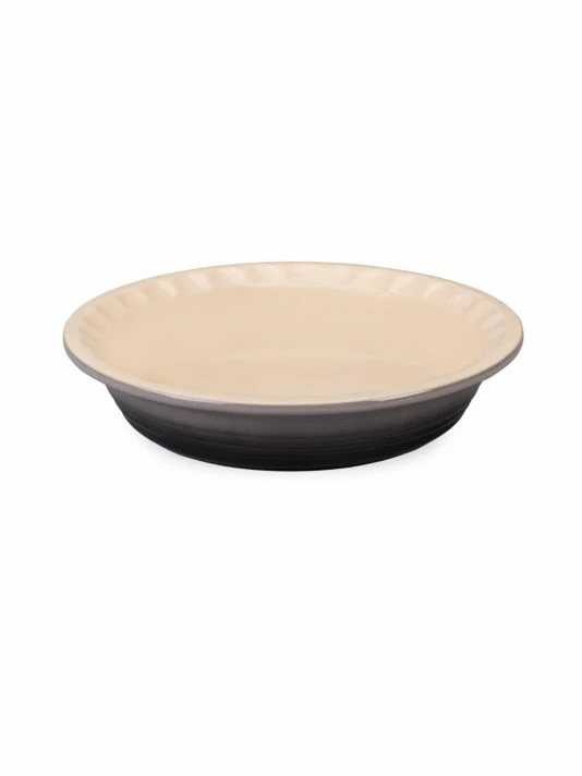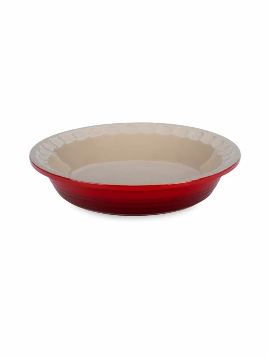 This traditionally styled pie dish completes a sophisticated and durable set.