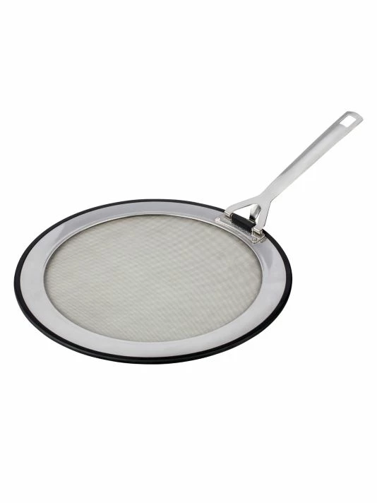 The stainless steel splatter guard is an essential accessory for any kitchen, keeping countertops and stovetops free from oil and grease residue. With its tightly woven steel mesh, the splatter guard vents moisture from the pan while containing hot oil and other contents.