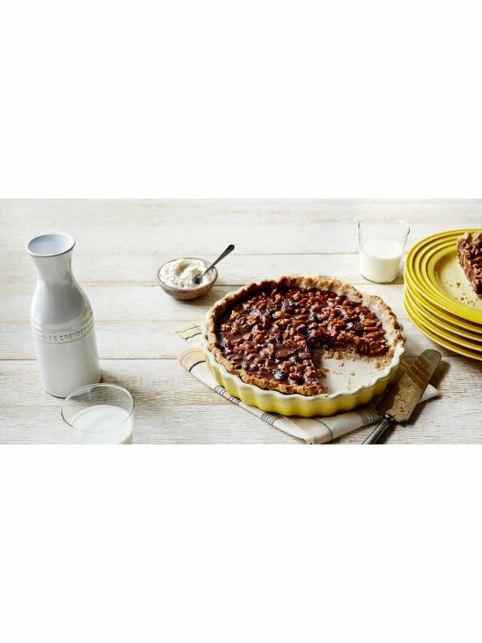 The stoneware construction of the tart dish is well-suited to baking and outperforms materials like aluminum to provide steadier, more even heat. Its curving sidewall adds a touch of character to finished pastries while also serving the functional role of helping crusts bake perfectly. 10-year warranty.
