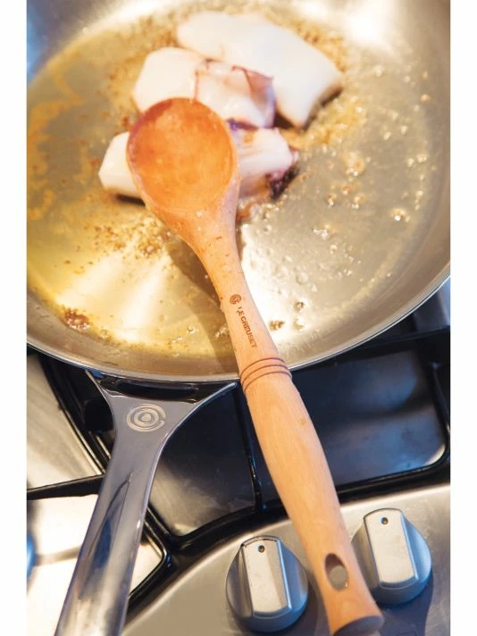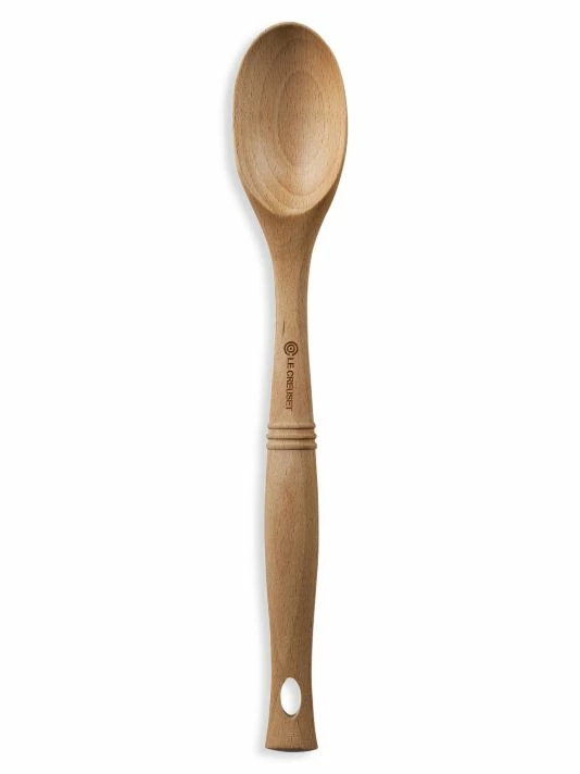 This classic solid wood spoon’s elliptical shaped handle provides a comfortable, slip-free grip. It’s resistant to odor and flavor absorption.