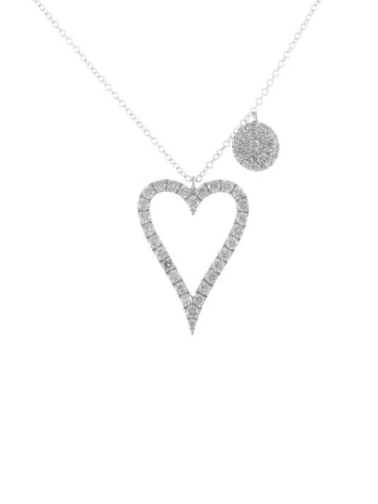 Diamond pavรฉ adds glittery shine to this heart pendant necklace with disc charm.