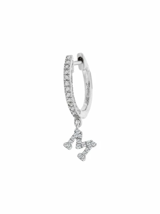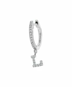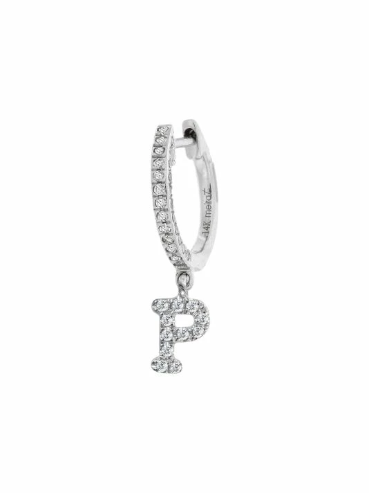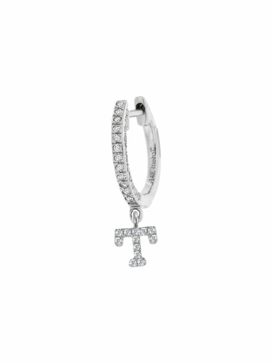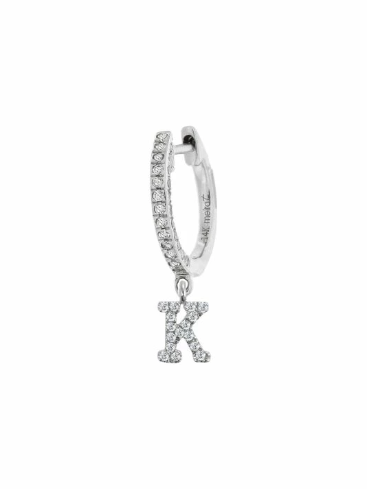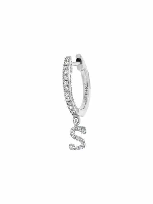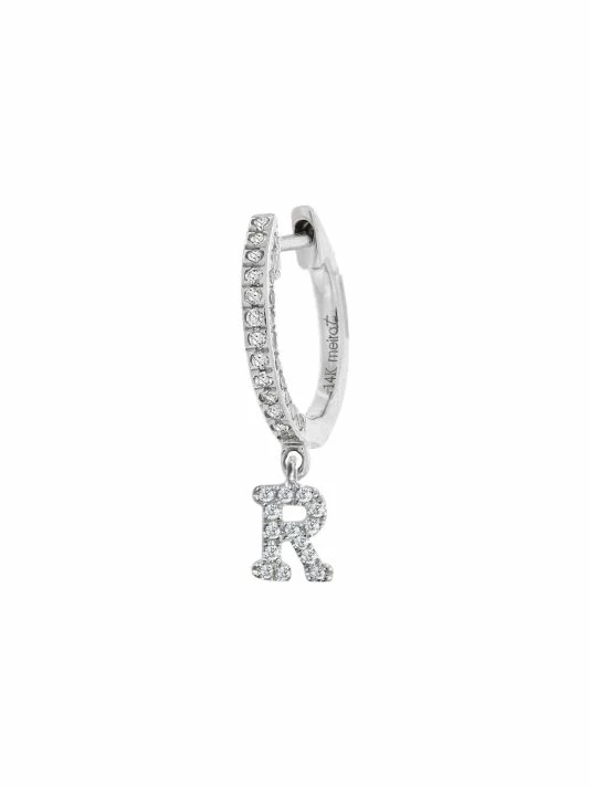 Refined huggie hoop accented with a single diamond letter for a playful look.