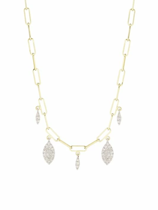 Romantic diamond pendant charms accent this gleaming 14K yellow gold paperclip-link chain necklace.
