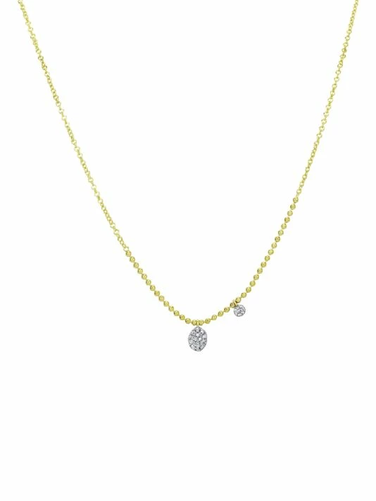 A delicate diamond pavΓ© oval drop and charm enlighten this 14K yellow gold ball chain necklace.