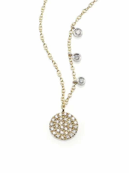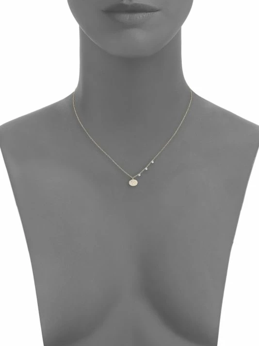 A pavΓ© diamond disc is joined by three delicate diamond charms on a graceful gold chain.