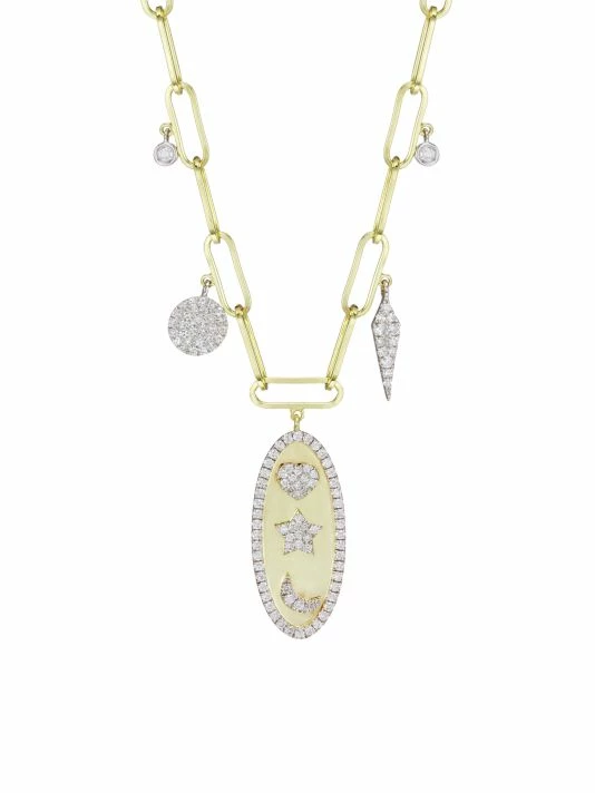 Diamond-embellished moon and star charms adorn this chain neckalce.